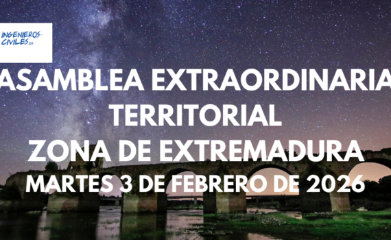 El próximo 3 de febrero de 2026 a las 17:00 horas en primera convocatoria y 17:30 horas en segunda, el Colegio de Ingenieros Técnicos de Obras Públicas celebra Asamblea Territorial Extraordinaria de la Zona de Extremadura, donde pueden asistir todos los colegiados de la Zona de Extremadura, en nuestra Sede del Colegio, C/ […]